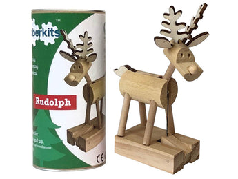 Rudolph nods his head and wags his tail, he's a happy little reindeer.