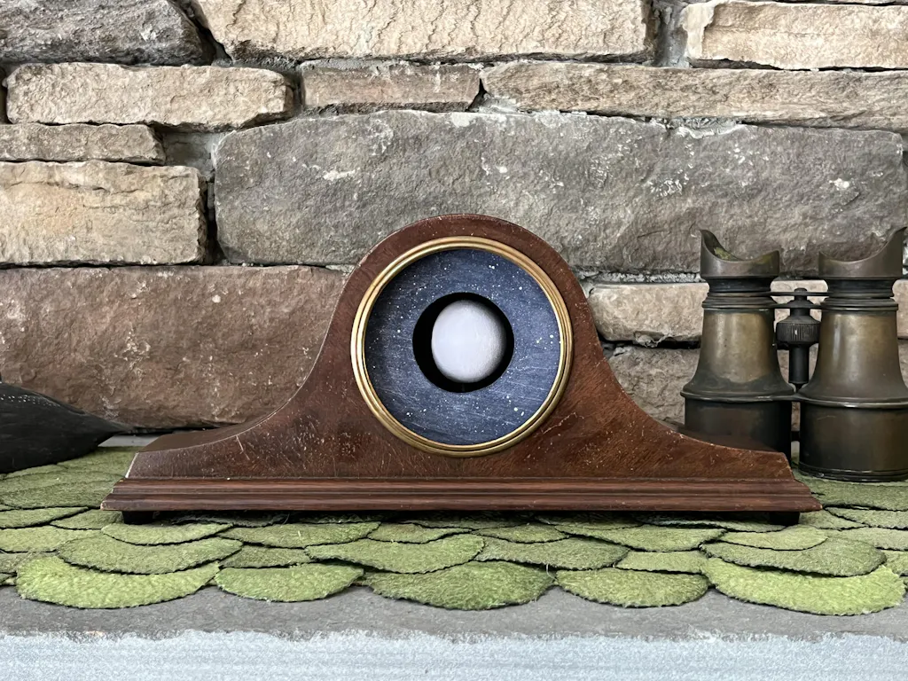 Inside the Moon Clock, a half-white, half-black sphere turns very slowly, driven by a special battery powered mechanism so that it continuously displays the current phase of the Moon. It does this minute to minute, from the first delicate Crescent Moon, to the waxing Half Moon, to the Full Moon, and then back to the New Moon. The representation of the phases is as accurate as the Moon itself, because the always half illuminated Moon behaves the same way in its interaction with the Sun.